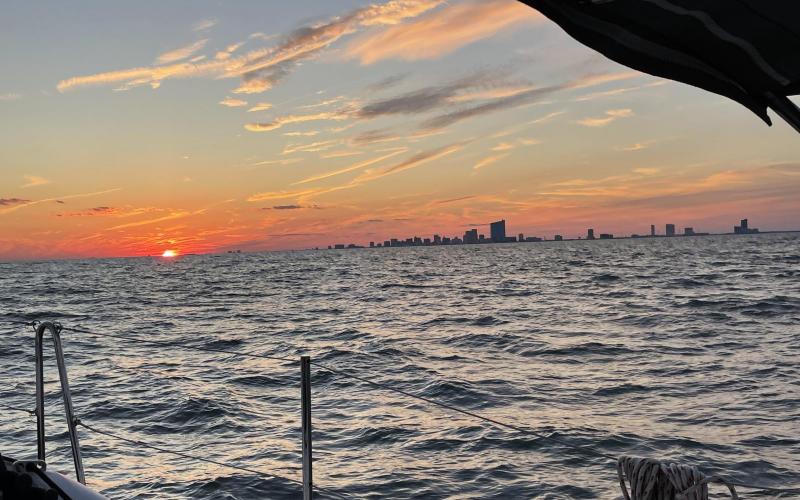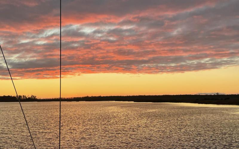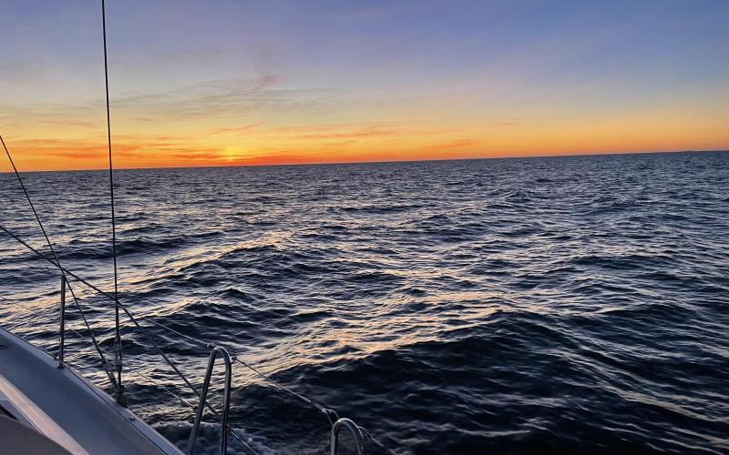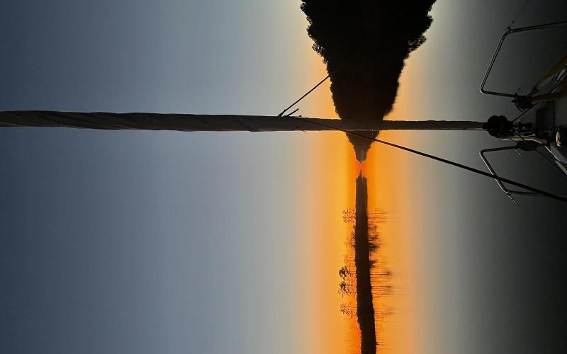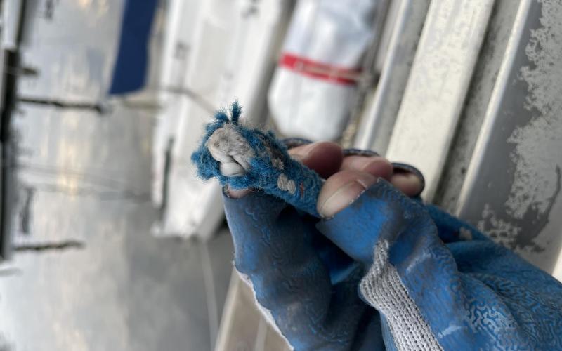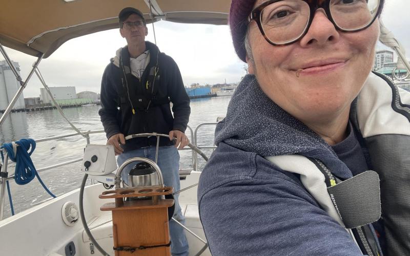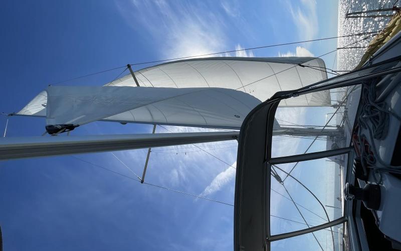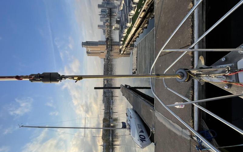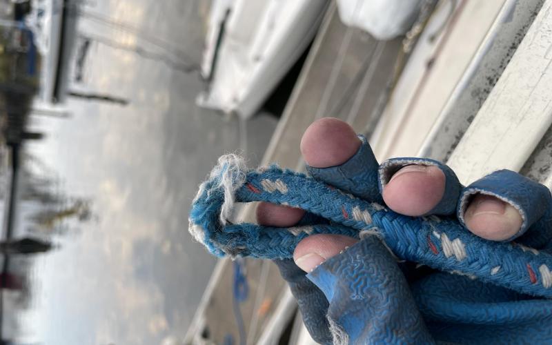 on SD we were able to start the engine with some percussive maintenance on the starter, and took it over to rusty scupper to pump out. Drained the fresh water tank, added anti feeeze everywhere including engine, and took both sails off. I had never taken a furling main off before so that was interesting. The outhaul was badly chafed at the clew, btw. Really glad we got that off when we did.
