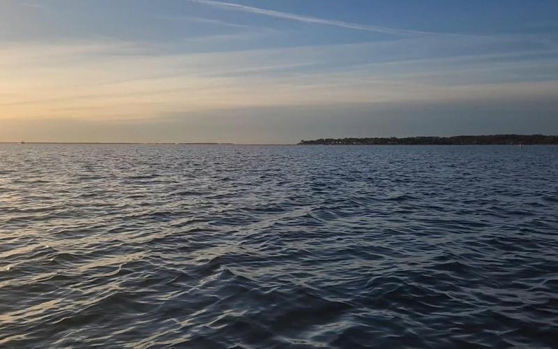 Several flocks of cormorants and ducks overhead and one great blue heron. Fish jumping everywhere, I presume menhaden.