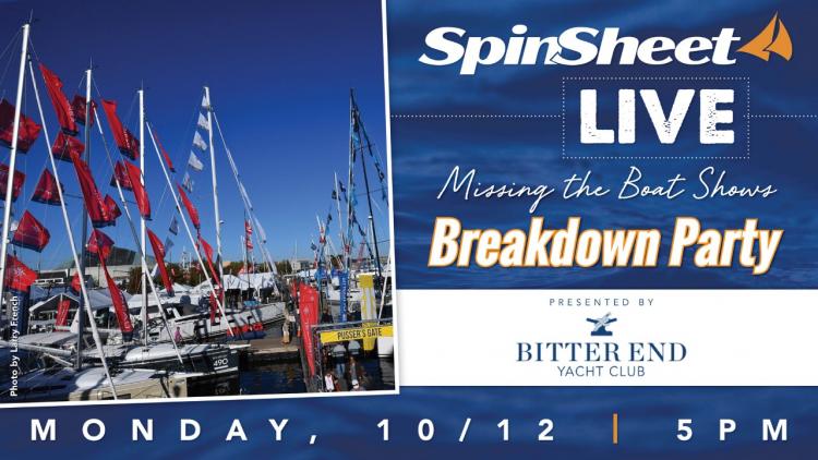 Because we can’t all be together in a big crowd watching the boats exit the show, as is our usual Columbus Day tradition, we’re having a party on Facebook Live… you’re all invited! Many readers have joined the fun of our SpinSheet Happy Hours on Friday nights, where we compare drinks, talk to sailing experts, and don’t take ourselves too seriously. In that same spirit, we’re having a party.