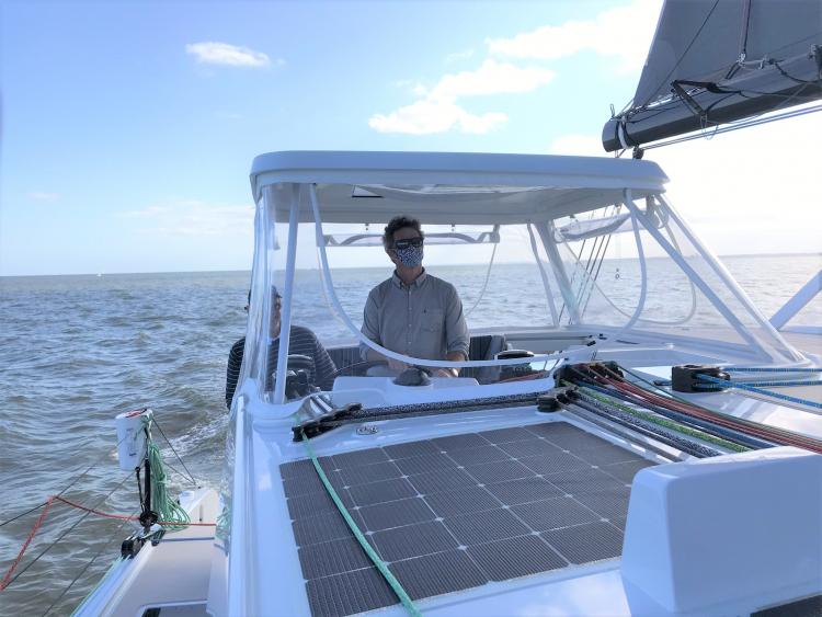 Among the new sailboat models that would have premiered at the U.S. Sailboat Show is the HH 50 Catamaran. A few SpinSheet staffers were lucky enough to meet and interview the owner of hull #3 and take a test sail on a breezy Chesapeake afternoon.