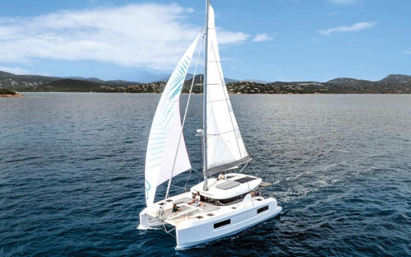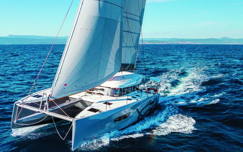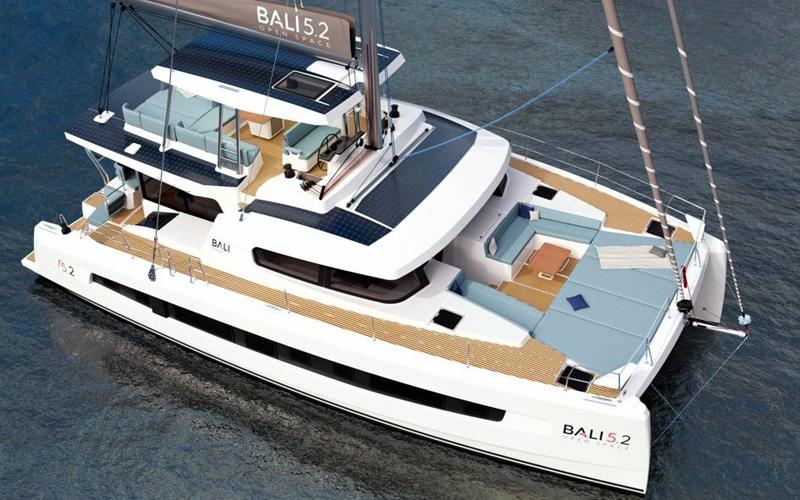 Making its North American debut, The Bali 5.2 is available in three, four, five, and six-cabin versions. Below decks is a spacious U-shaped galley, a saloon table that can seat 12, and a chart table with a connected equipment management system. The solid foredeck creates a secure and spacious living area. The adjustable rooftop and aft platform provide more gathering spaces. An overlapping genoa enhances upwind performance, complemented by the square-topped mainsail, ideal for light winds. Dock B. bali-catamarans.com