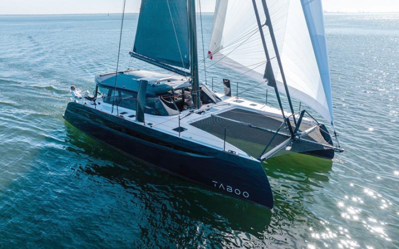 Making its North American debut, the Balance 580 model is designed for sailors with speed in their hearts but luxury on their minds. With long lean hulls and carbon reinforced structure, foam core hulls, and 100-percent epoxy construction, the 580 is a high-performance voyager. With high aspect daggerboards, she points high upwind, with little leeway, in the eight- to 11-knot range. Reaching in true winds between eight and 16 knots she’ll do wind-speed or better with ease. Put her in stiff winds and surf and let the excitement begin as she accelerates into the 20s. Dock C. balancecatamarans.com