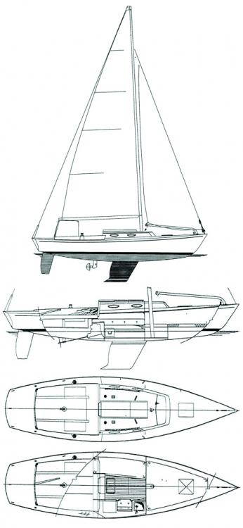 The engine package has changed over the years; earlier boats were shaft driven with a two-cylinder Yanmar diesel. The engine and transmission were later changed to a Yanmar sail drive. Current models are delivered with a Volvo engine and sail drive. Current specs on new boats indicate stainless rod rigging; all the older boats in my records were 1X 19 stainless wire.