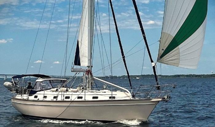 “Epithelios” — new listing, cutter rig/3 curlers, 2 private staterooms w/ head/shower, ultra leather upholstery, AC/Heat, Genset, bow thruster, turbo-diesel Yanmar. In Annapolis. Asking $299,000 Call Rod Rowan 703.593.7531 or www.CrusaderYachts.com