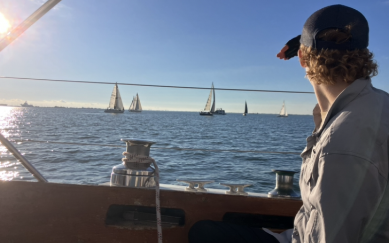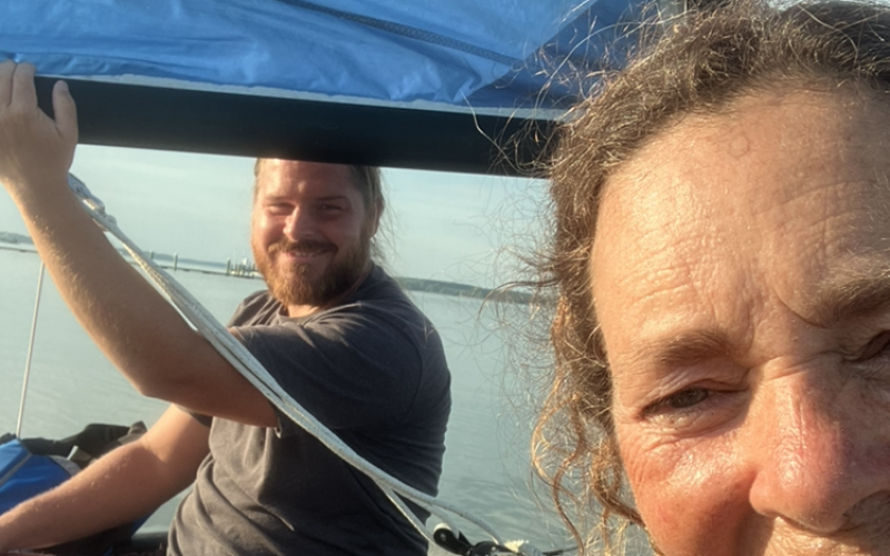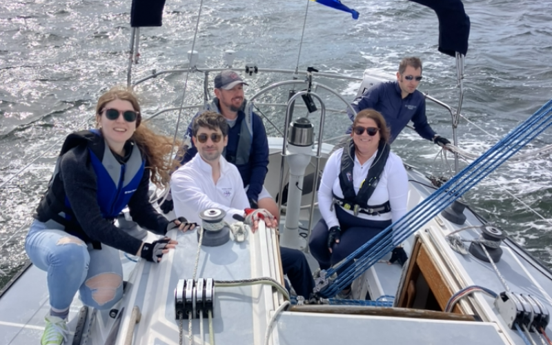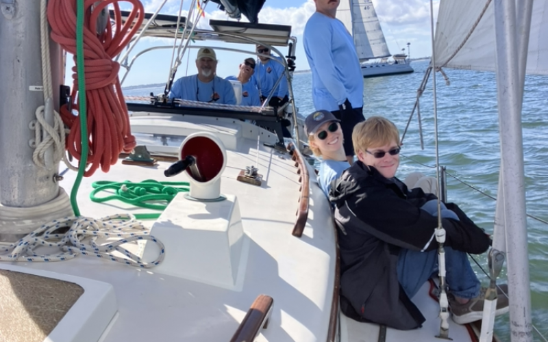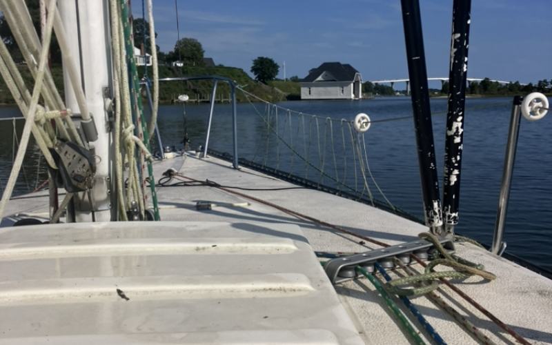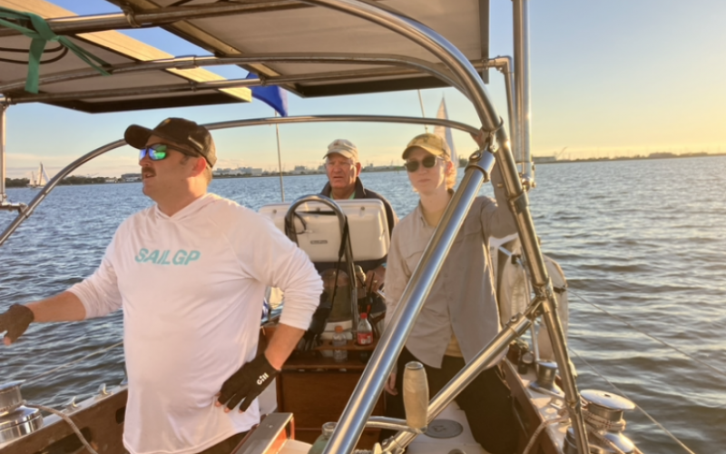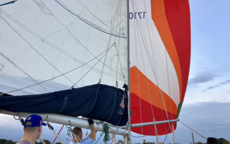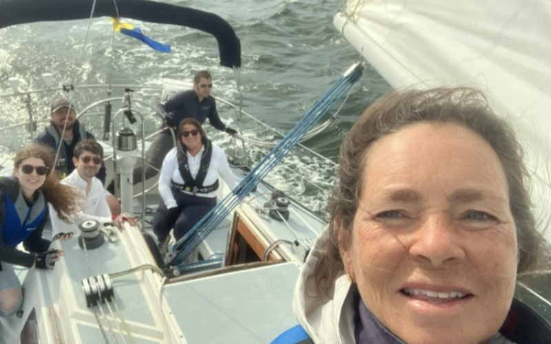 Had pretty good winds and had to tack many times coming back under the bridge.