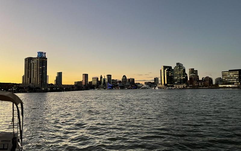 Enjoyed the fantastic weather getting out on #4 with James & Dan for a couple of hours tonight. We reefed b/c wind was supposed to build as the evening went on, but it dropped dramatically approaching sunset. We had a really beautiful sail out just past ft McHenry and back. ≈2.5 hrs, cool, wind was SE (really ESE) 8-12 most of the night.