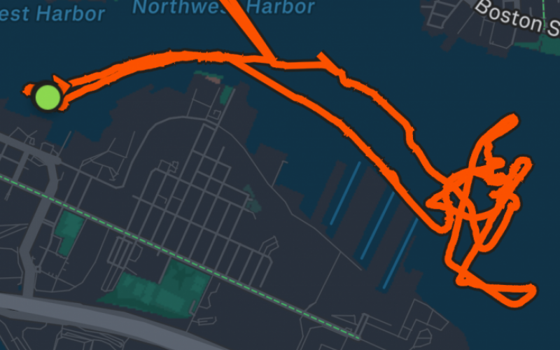 Lovely evening in spite of the continued pistachio tide in the harbor. We motored out past ft mchenry to find the wind, and then did a few POB's and a couple heave tos, and reefed. It was very pleasant weather in the mid 60s, sunny, and wind was 5-10 NNE once we got well away from the peninsula. ≈3.5 hrs