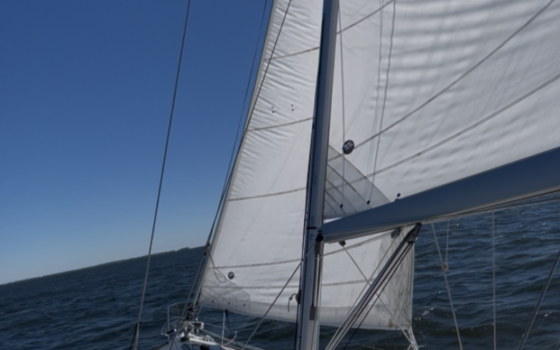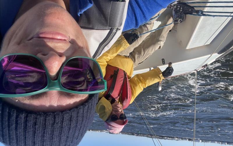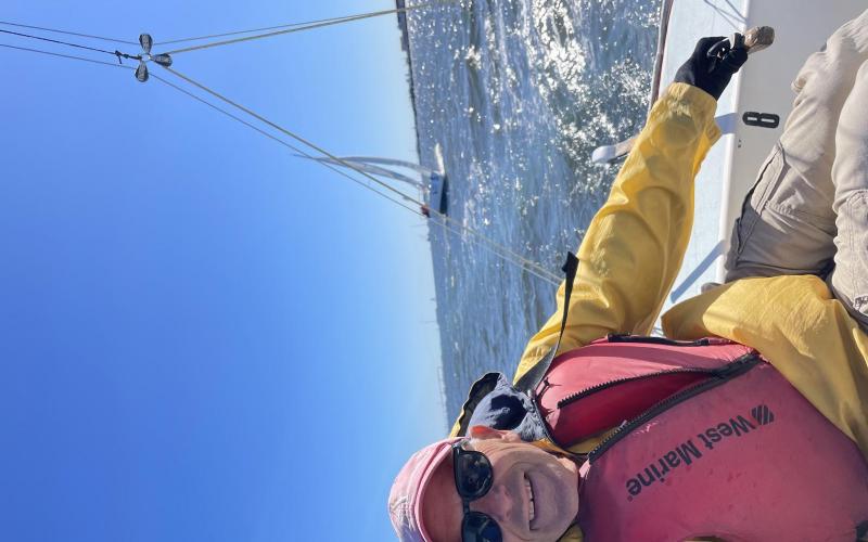 Gorgeous weather, wind from the SW started in the mid teens but built to 20 later in the day. We ended up just tacking around and enjoying the day. Had some rigging/logisitcal discussion and oriented a couple new folks to the boat.