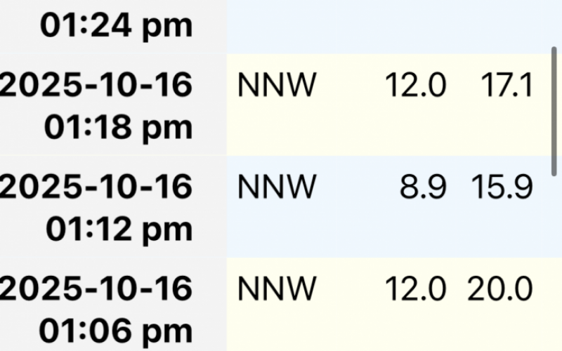 Wind was 10-15 NE but lots of extended periods of gusts in the 20s. Beautiful weather though. ≈2hrs