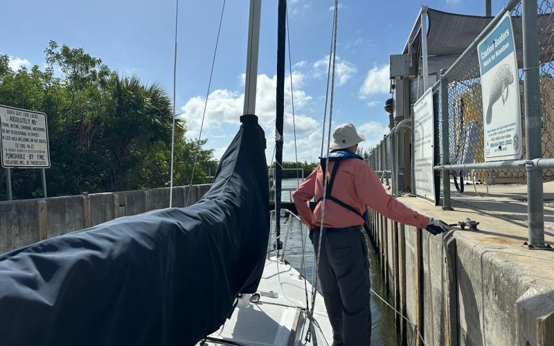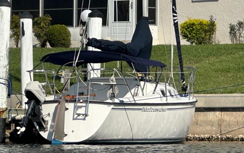 Did a short sail on Charlotte Harbor to make sure that the new bimini on Fahrfrumwurken does not interfere with the mainsheet when sailing. It worked fine and provides more clearance from the boom than the old bimini.