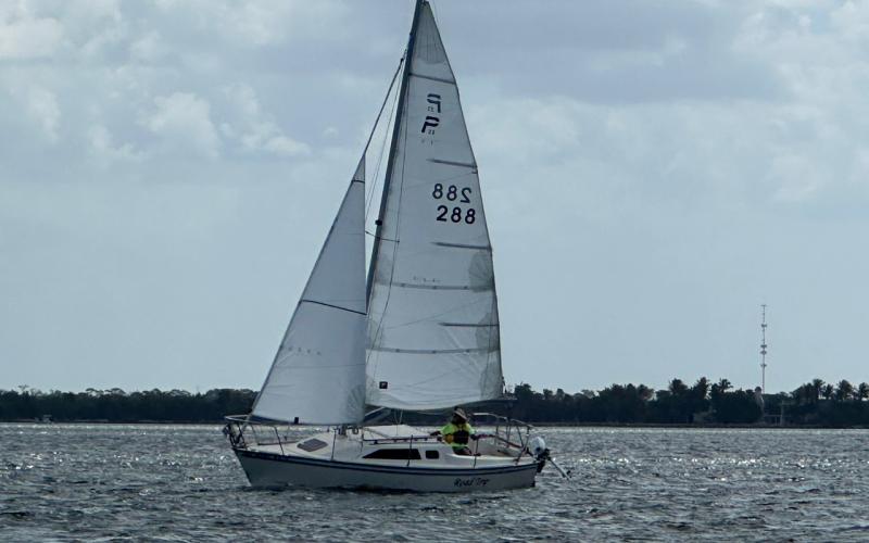 Went for a sail on Charlotte Harbor. Skies were overcast and few boats were out but there was a nice breeze around 15 knots.