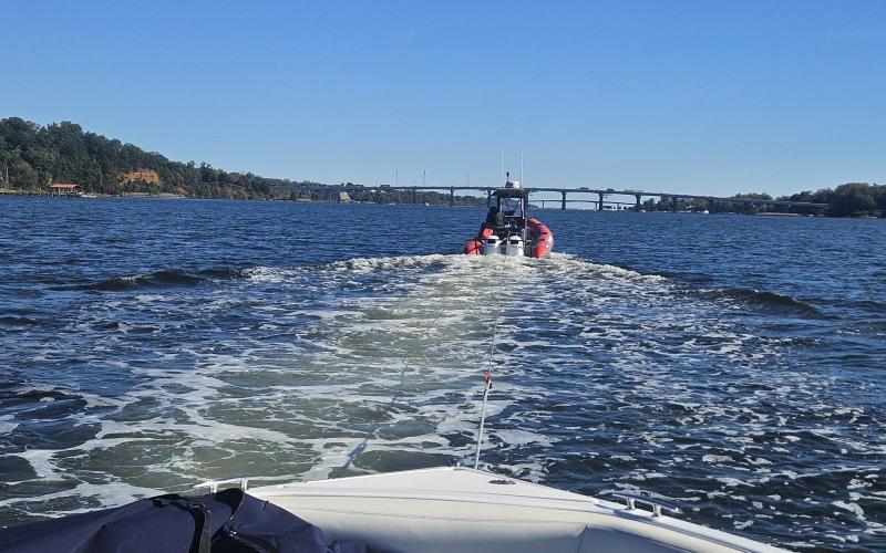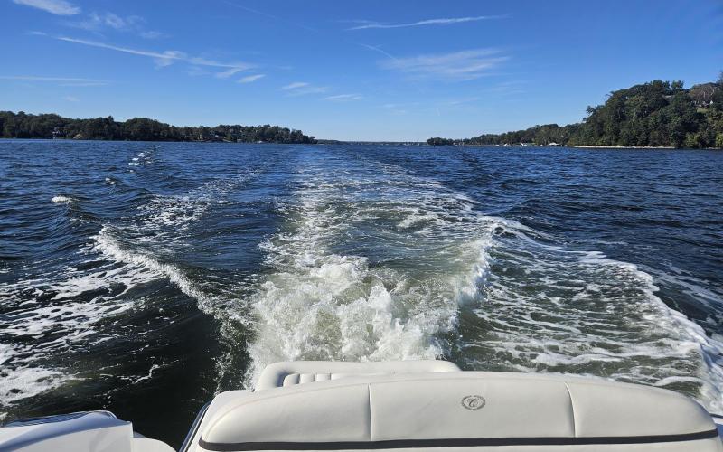 Not attached to the dock, not aground, not at anchor.