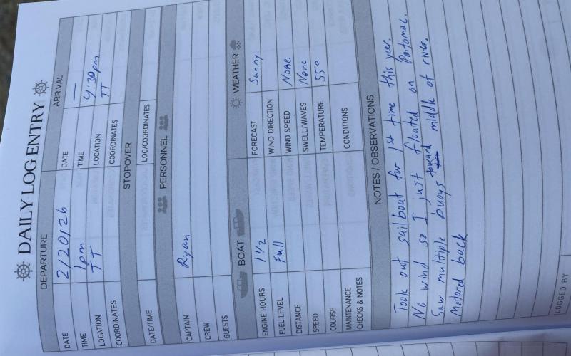 Took out sailboat for first time this year. No wind so I ended up just floating on the Potomac. Saw multiple buoys toward the middle of the river. Could be crabpots that are in the deeper parts. Ended up motoring back.