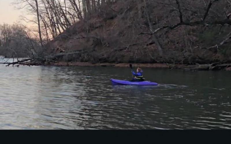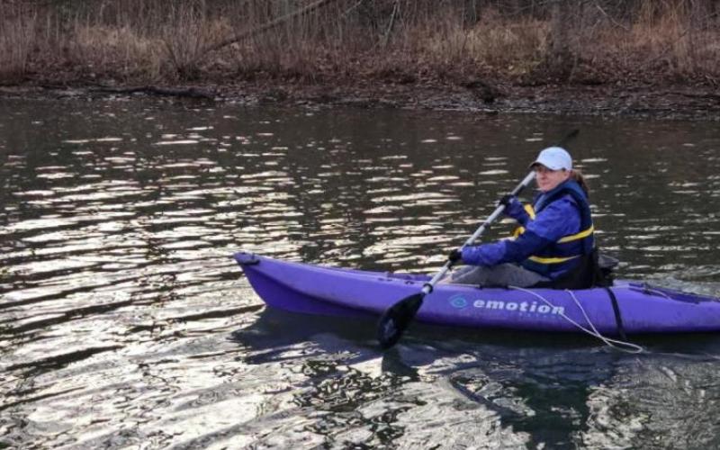 Kayaking and breaking ice on the creek
