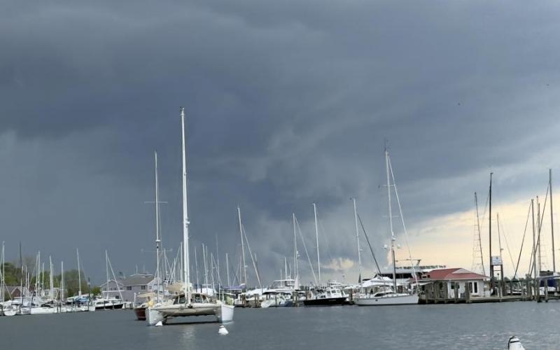 The Admiral and I enjoyed a lunch on the boat while anchored along the leafy shoreline of Clement Creek off the Severn River.