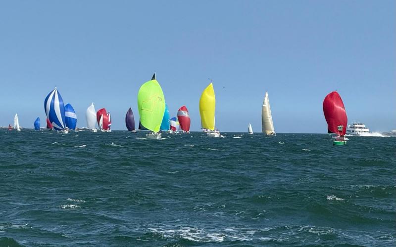 The biggest Boston harbor race of the year, a pursuit with 68 boats and a spirit award. And it was another Pony day! we glittered and neon-ed up and got ready to race (a little late, out at the line with only 12 minutes to spare for our start, we checked in as we sailed over the line). What was predicted to be a low wind drift turned into a high speed day, with ripped kites (not ours), broaches (once for us), and wild Boston racing!