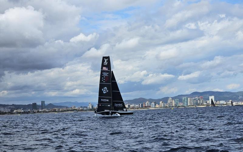 On a sailing catamaran to watch the Louis Vuitton Challenger Series. American Magic vis Luna Rossa
