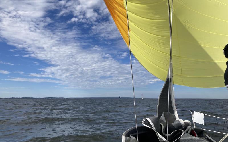 Arranged my plans to join team Dangerous for what might be the last ride, and certainly the last big distance race. We started in light conditions downwind, and kept our trimmers busy until we arrived at PR1, when the angle shifted forwards enough to go to the jib. By the time we reached Hooper's Island light we were just about beating, and passed the lighthouse and kept going until we could lay Point No Point. We tacked and I took over the helm for a spell, and as we got closer to the lighthouse we were able to crack off, having overstood a bit by not anticipating the shift arriving earlier than planned. We set a spin on the last leg, and enjoyed building conditions all the way up the Bay. Perfect weather and conditions made for a fantastic day on the water, and we managed to clinch a second place and firmly cement our second in the middle distance series despite missing the first race.