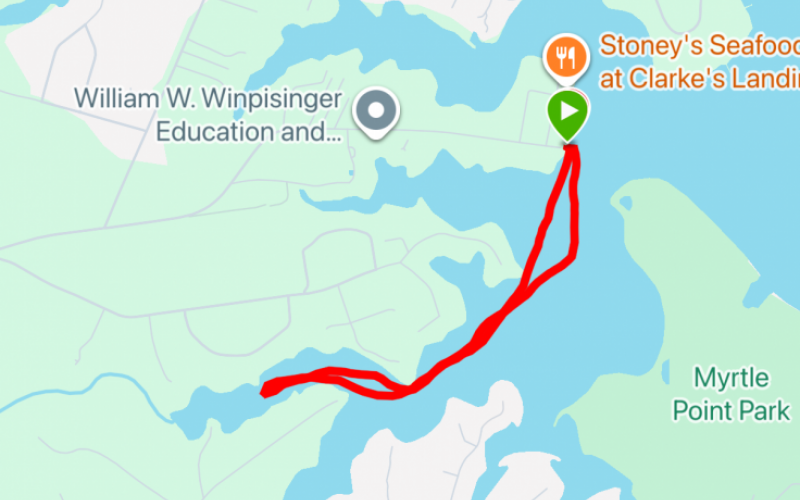A very brief lap off Clarke's Landing after work and before going to dinner. Heavy conditions but warmer than anticipated weather made for a good workout on the way out and a pleasantly quick ride back.