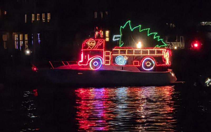 NYE fireworks in the fog, and a spooky ride home after mignight in the dinghy.