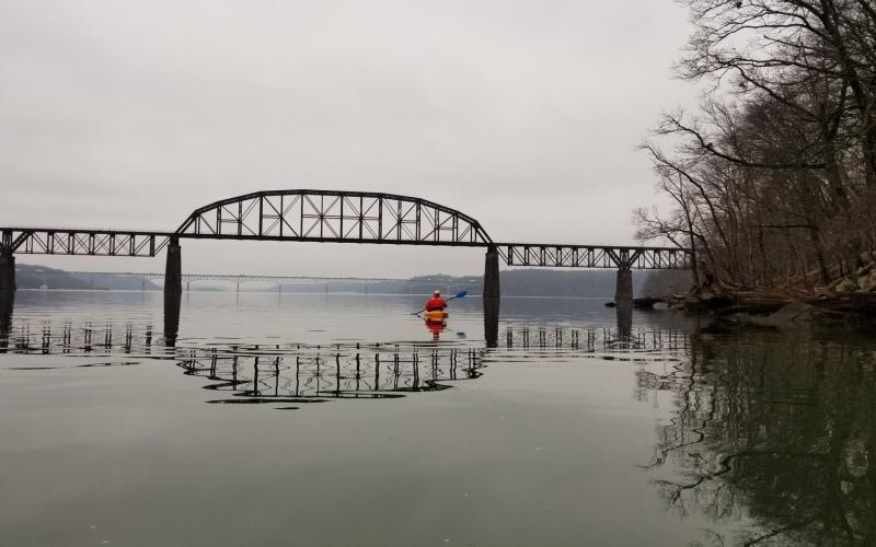 Dobbs and I kayaked off Red Point Beach 1.75 miles out onto the Flats. The late afternoon was overcast and calm. Crossing the Northeast River, water clarity/visibility was about two feet. On the Flats, we turned around a half-mile shy of my summer snorkeling waypoints with no sign of improved water clarity. Seagulls floated in flocks. We heard "coo-hoos" in the distance, the call of tundra swans, I think.