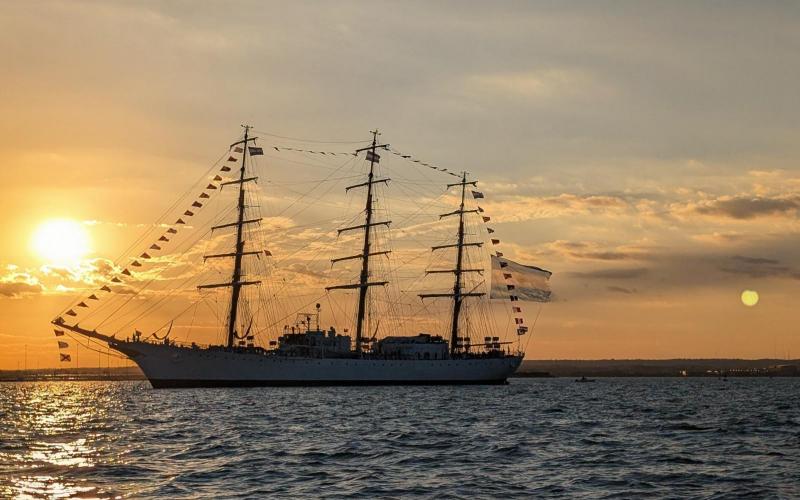 Sailing in the harbor for sunset, full moon and the Argentinian sailing ship views