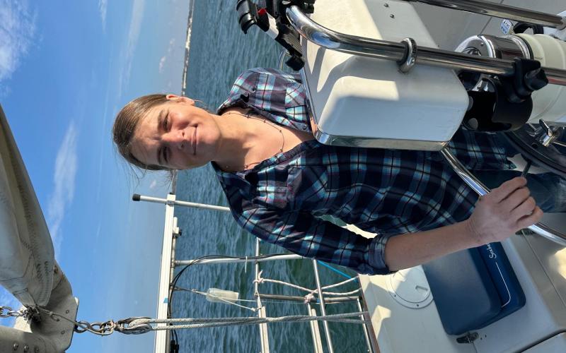 An unusually warm day with 15+ knots west breeze had me seeing 7.5 knots on a broad reach! A bit of tacking into the wind and outgoing tidal current to enter Back River.