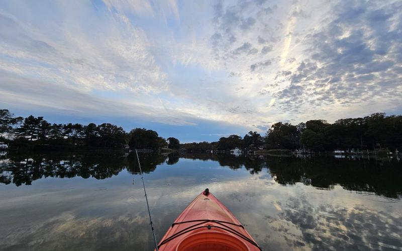 Sunset Kayak. Tour of Little Magothy while doing some fishing for perch. No fish, but a beautiful Fall paddle. Happy hour beer drifting in the LM.