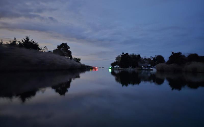 Sunset SUP. Little Magothy Inlet marks and dredge barge to LM tour.