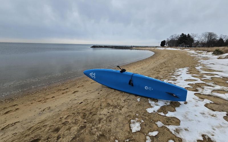 Noon SUP. Into the Little Magothy to check the ice, then along the Cape coast past Persimmon Point, back to beach.