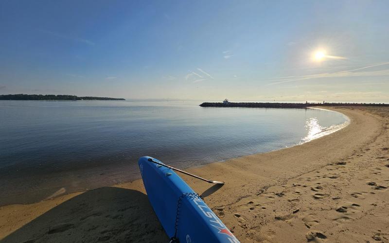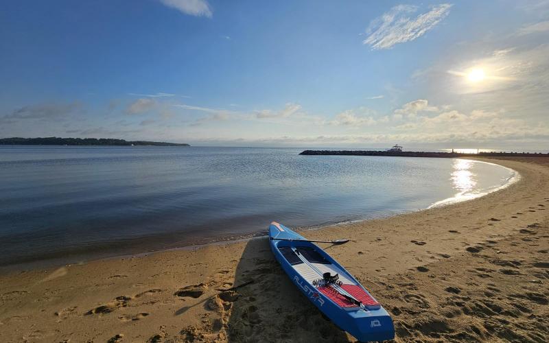 Morning SUP before work commute. Little Magothy Tour. A little breeze on Bay so at the end went out a bit so could downwind a bit back to the beach.