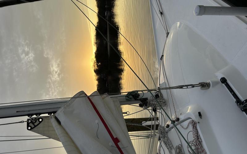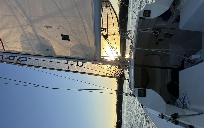Joined Winsome Ride for a daysail and had a wonderful time. Put main and genoa on their furlers, which took some time with all the battens, and then only had light winds in Round Bay until after 45 minutes the wind picked up and we had 12-14 sustained. Glorious Saturday sail!