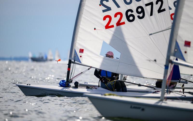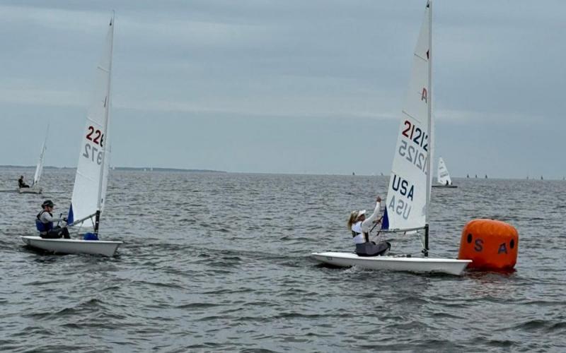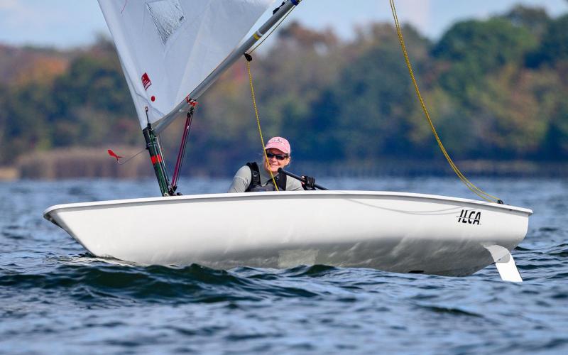 Saturday we drifted out but didn't get in any racing. The forecast for Sunday was also bleak but the RC did a great job waiting for the breeze and we got in five races. We had tight racing in the ILCA 6 fleet and I edged out on top narrowly ahead of the amazing sailors Kim Couranz and Pam Corwin. What a fun day to celebrate 100!!