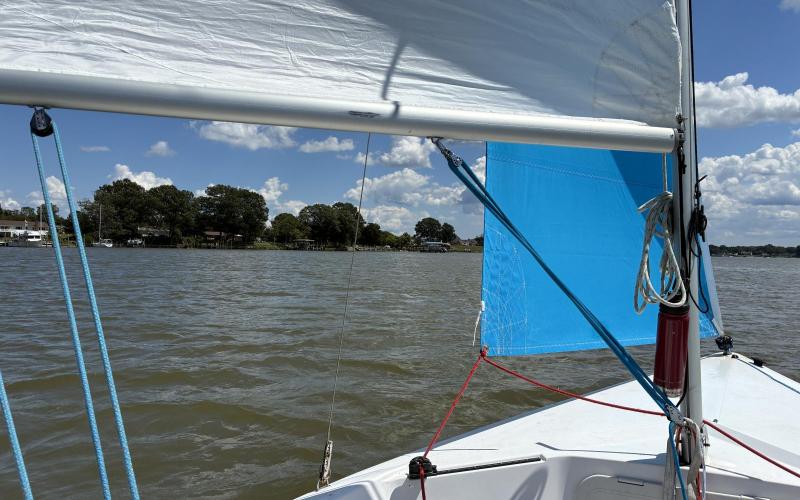 Near perfect sailing conditions for my 15’ Precision and my skill level. Sailed out to Colonial Beach at just under 4 mph.