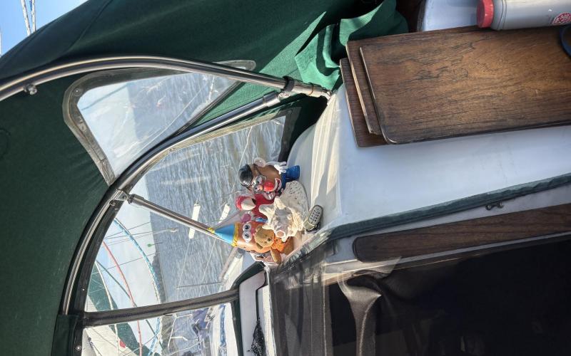 September 1 - went out in some nice winds out of the ENE with the first mate. Winds were blowing 9-14 and we were working on balance of the sails. First mate took the helm and was learning what it meant to be balanced and then would let me (working the sails) know what was going on. It was a great exercise for her. After playing a bit, we went up and anchored at Cacaway Island for a bit before heading in.