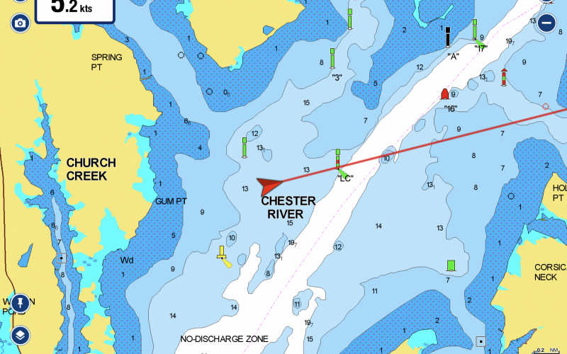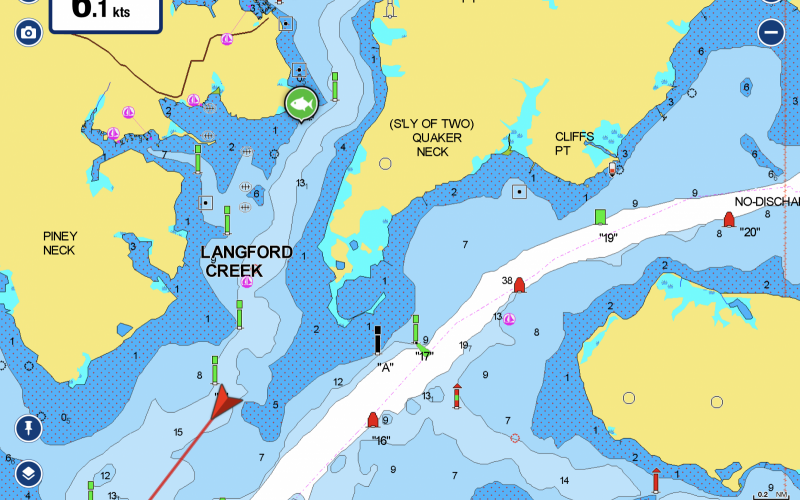 There was a SCA out - Winds were out of the NW at 10 it with gusts to 15+ kts. Mostly cloudy - temps in the high 50s/low 60s. Barometer was at 29.98. Headed out - got sails up early and headed down Langford Creek. Let the first mate take the helm while I managed the sails. Headed out into the Chester and made our way towards Narrows Pt on Eastern Neck Island before turning around and heading back. Lovely sail - had the genoa reefed the entire time which made it a pleasant ride - should have reefed the main also, but no harm no foul. A lovely few hours out on the water to celebrate Bubbles being back int he water!