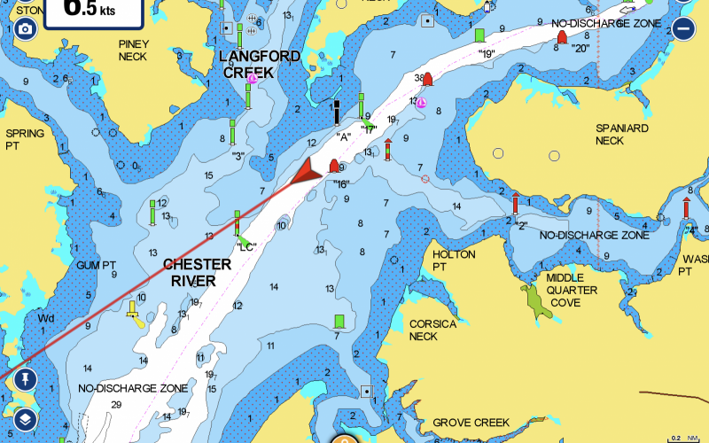 Sunday the 29th. The first mate departed after breakfast to drive back home. I left the dock at about 9:30 under cloudy skies. Temp was 62-70... so a bit cooler with the Barometer at 30.04 and falling. Winds were out fo the NW at 10+ knots. Got the sails up right as I got out of From Mortor Creek and had a fantastic sail all the way back to Lankford Bay Marina. Was on a Port tack all the way down to right outside of Kent Narrows. Wind died off a little bit there, but came on strong again once I was around Eastern Neck island. Sailed all the way up the Chester and into Langford creek before dropping the sails and into the slip at about 5pm. Great sail - great weekend!