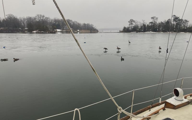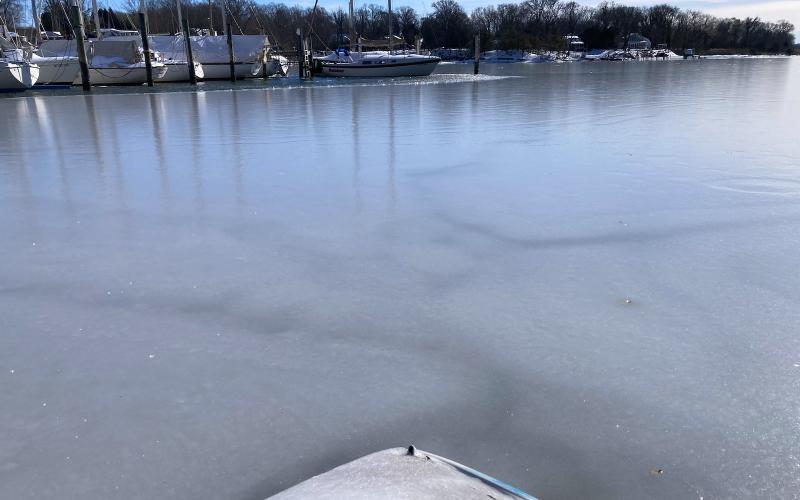 Having dealt with boats in icy, slippery and potentially deadly conditions for over 40 years, I adopt this simple method for surviving: do not move without thinking about the move first. Then think and move again. Rinse and repeat.