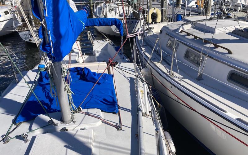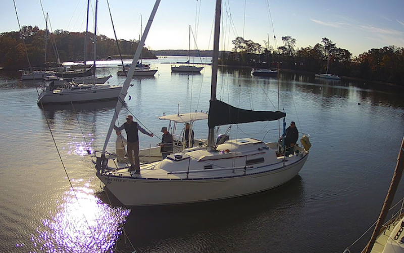 Got a message around 6:30 a.m. that I should come down and check lines and spreader separation from the boat next to mine. I was not there when they tied up, and it looked like, from the Lawn Camera, our masts were perfectly in line, which is a no-no in any sort of a raft-up situation.