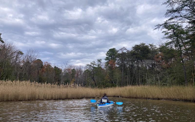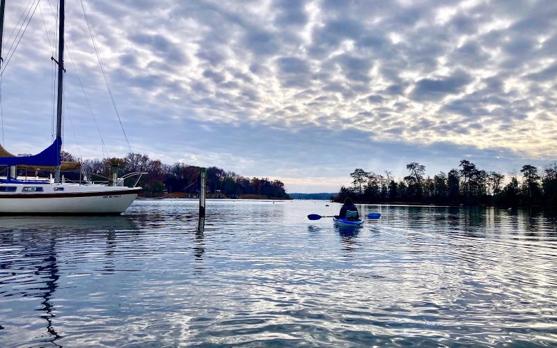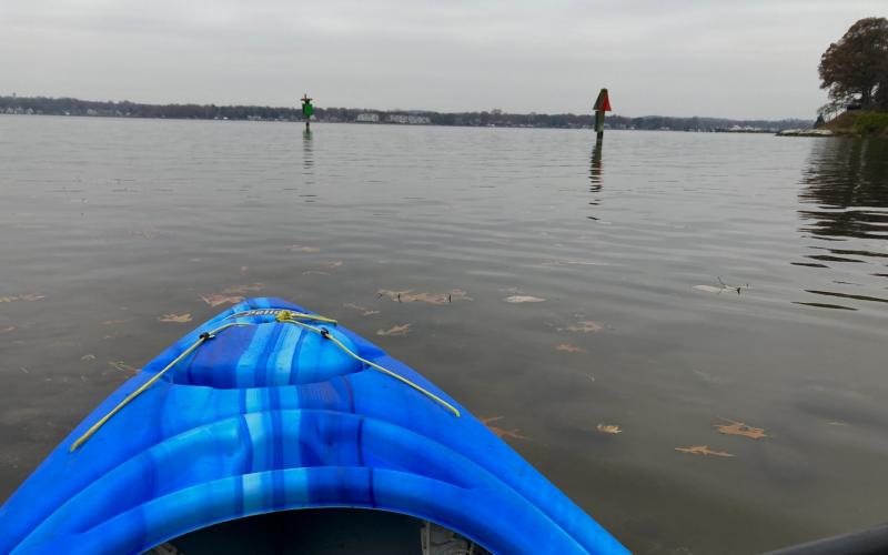 Took 40 minutes to splash a kayak and paddle out to the river on a calm, gray day. Great light.