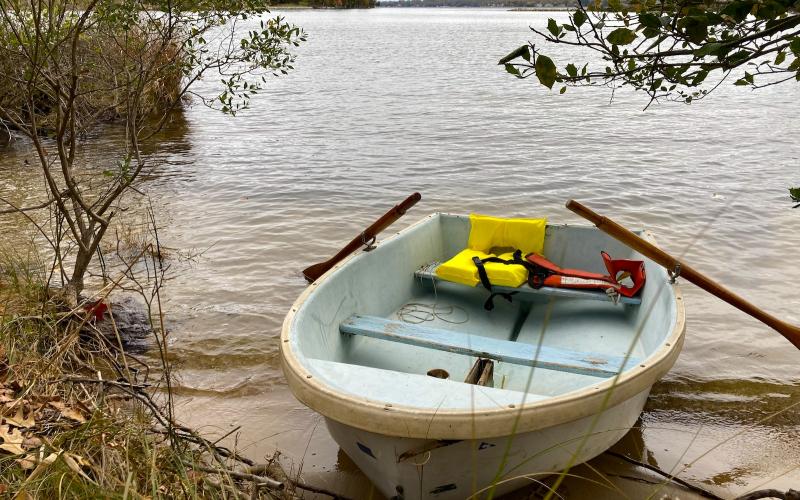 I had not even noticed until it was time to put the helm over and head out of the creek. And I was already having second thoughts. I had the 3.5 HP on the stern and two sets of anchor and rode snugged up aft to add enough weight to keep the short-shaft O/B's prop in the water. But that was dicey. Then, add insult to injury, the g.d. outboard was crapping out at RPMs slightly above idle.