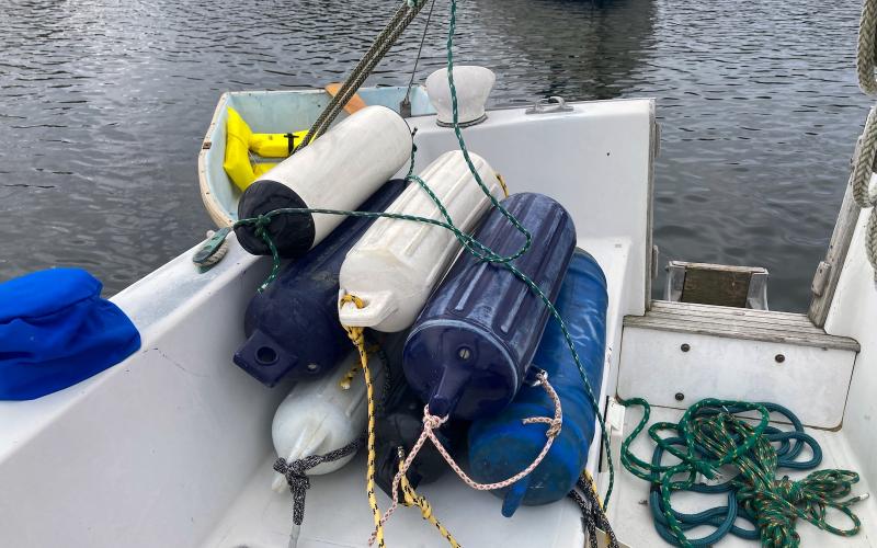 Turned out their ETA back to PSA was a tad later than I could hang around, so I spent an hour or two setting new fenders up on starboard side and figuring out a way for them to release me as easy as possible. Finally came up with a scheme.