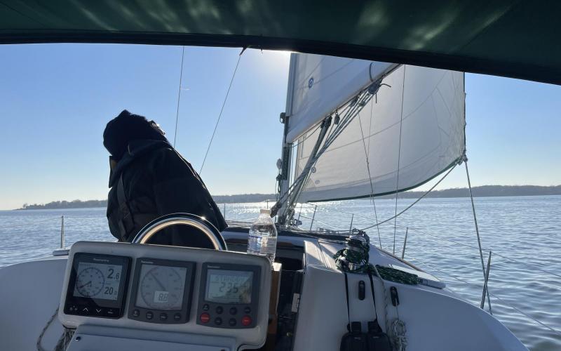 Bruce and I took Mystic out for a nice mid-day sail. Sunny, high 50, winds 10-15 knots from the south.