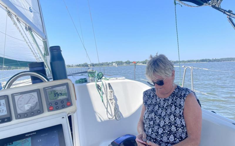 Brad, Meredith and Cam joined Debbie and I for a peaceful sail across the bay. 5 to 8 knots from the northeast.
