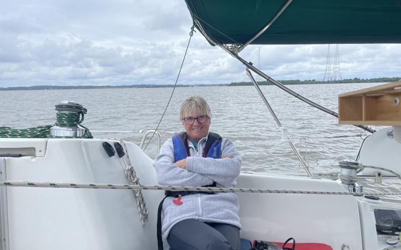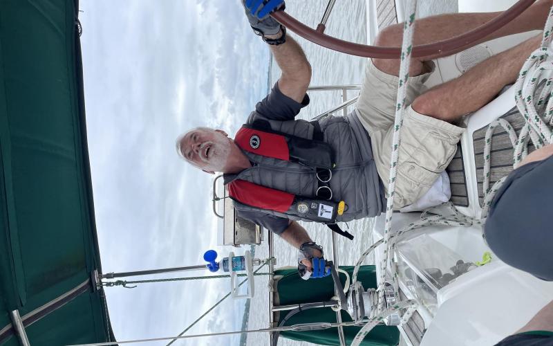 Debbie, Bruce and I tried out the new winch installed near the helm. It works! Light wind. Comfortable temperature.