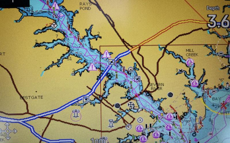 Bruce, Steve and I sailed up the Severn in a 10-15 knot southerly. Once we reached Round Bay we tacked back down the river. The electric winches saved the day. 22 tacks in all. Once we approached Whitehall Creek the wind approached 25 knots with full jib and reefed main. All was well until the furler on the jib failed so we sailed into Rideout Creek and lowered the jib in the protected area.