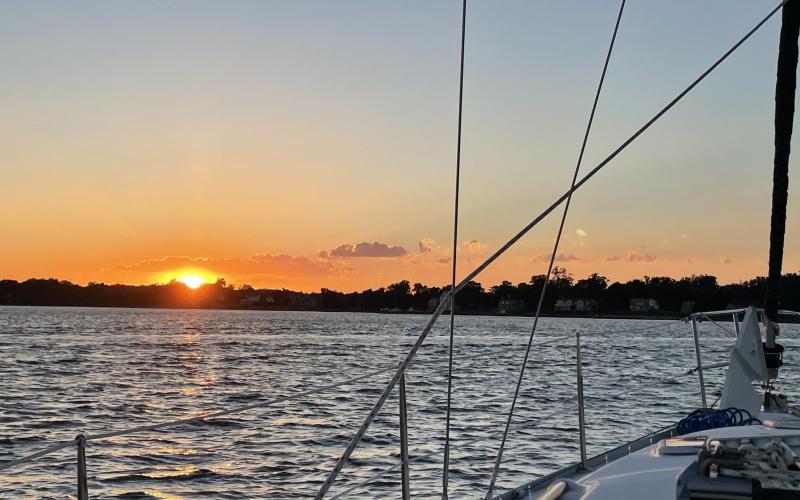 Bruce, Steve and I had a pleasant sail on the Chesapeake. Northwest breeze at 10 knots. Comfortable temperature.
