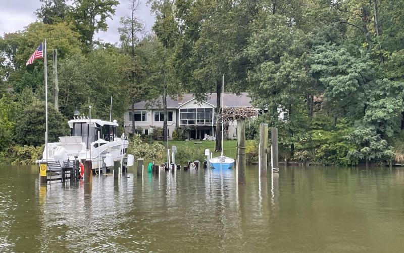 I took Impulse up to the headwaters of Whitehall and Rideout Creek. The tide was high in the aftermath of Tropical Storm Ophelia. Old piers were under water. New piers were one to two feet above water.