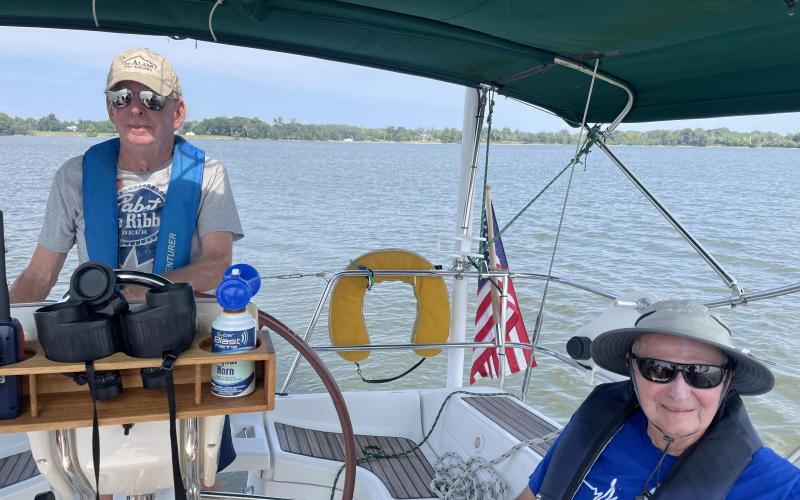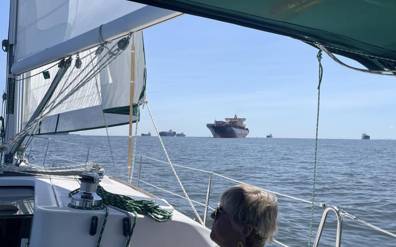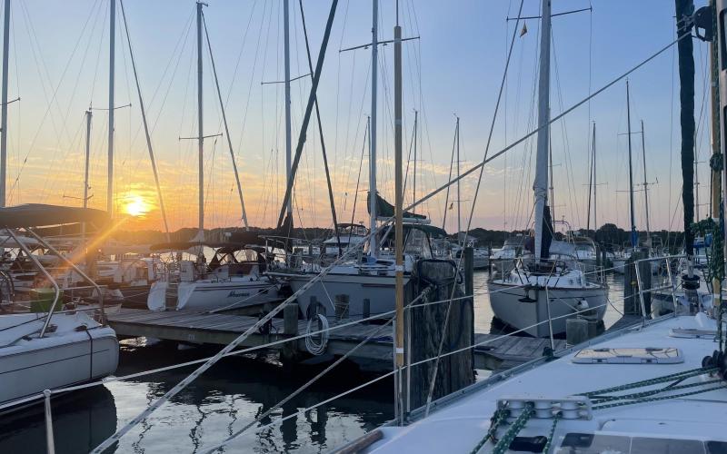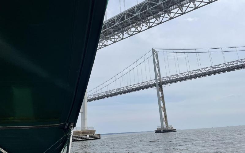 Mystic joined Jennifer and Peter on Gambrinus and Ann and Tod on Fiscal Stray. We had a nice motor sail to Granary Creek on Friday. On Saturday we followed Jennifer and Peter to Rock Hall to have dinner with Mike and Jean on their trawler. We took the shortcut through Kent Narrows. A strong current and lots of motorboat traffic made for an interesting journey. Our sail into Rock Hall was pleasant, touching 7 knots at one point. Our journey home included a nice sail south of the Bay Bridge. Perfect weather conditions!