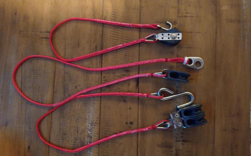 Replacing all the old standing and running rigging to the boat. Full day of splicing, load testing, and on-land functionality testing. Also repaired crumbling mast rotation arm and failing rivets on the mast/boom.